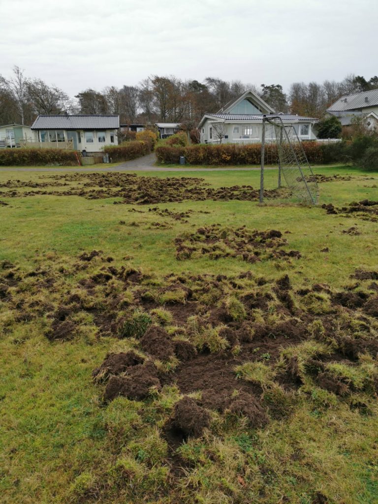 Vi vill göra er medvetna om att det härjar vildsvin på Grimsholmen. Nu har dom vänt upp och ner på fotbollsplanen. Vi får hoppas att dom inte ger sig på våra trädgårdar. Om ni har bilder eller info om att man varit inne i trädgårdar så kan ni höra av er till mig så kan jag uppdatera denna nyhet. Om man har tid och lust så får man gärna vända tillbaka grästuvorna så blir det bättre inför våren. Vår ordförande Urban är jägare och har nu börjat agera i ärendet.